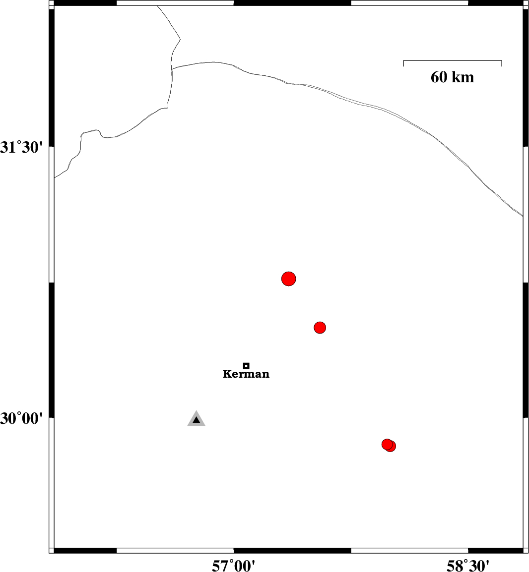 2020/06/27 | 07:48:03.3 | 12:18:03.3 | 30.77 | 57.35 | 10 | ML4.1 | Kerman Province, 60 km North-East of Kerman | ||