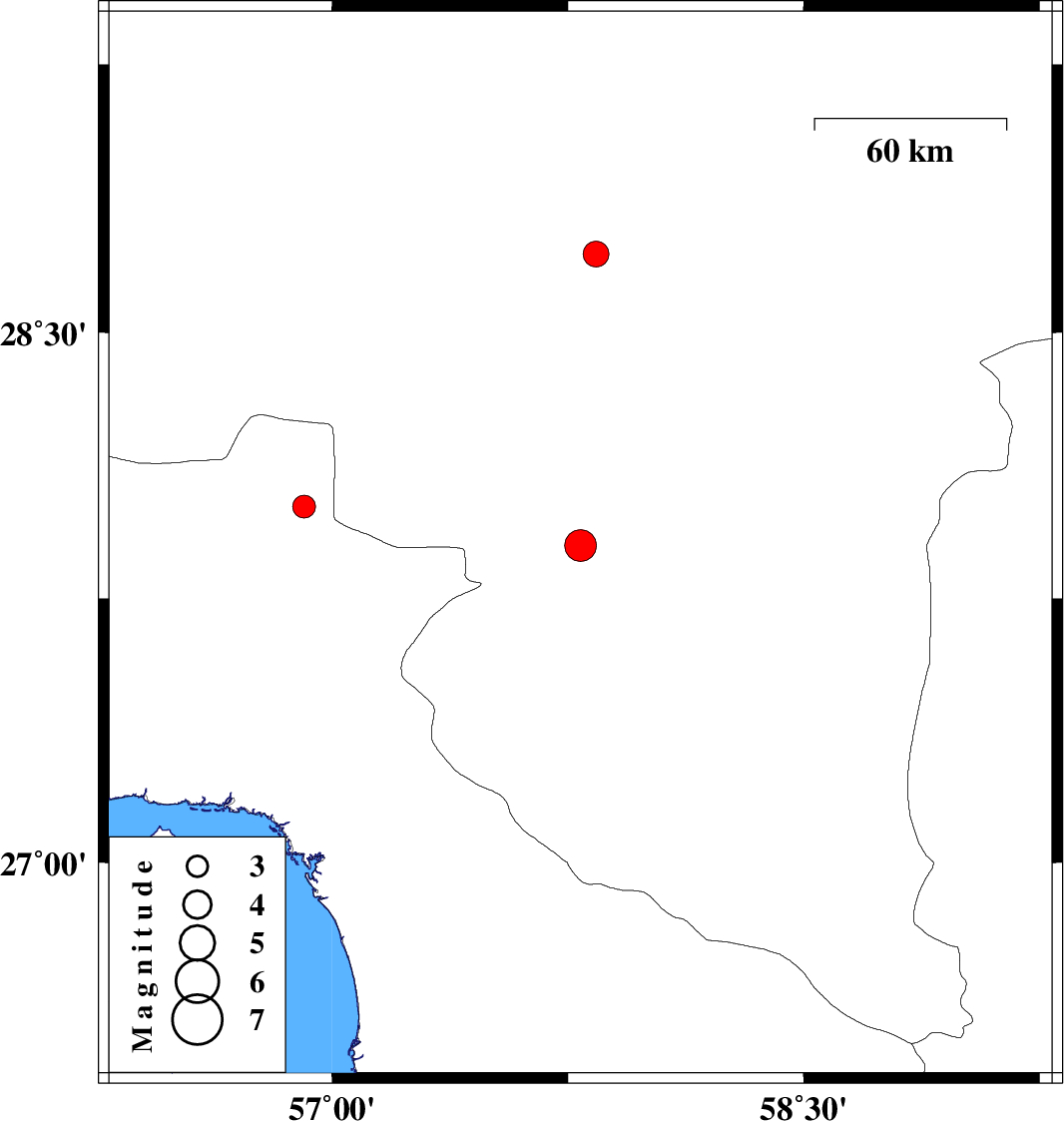 2020/07/08 | 06:33:06.2 | 11:03:06.2 | 28.72 | 57.84 | 10 | ML:3.7 | Kerman Province, 11 km -East of Jiroft |
