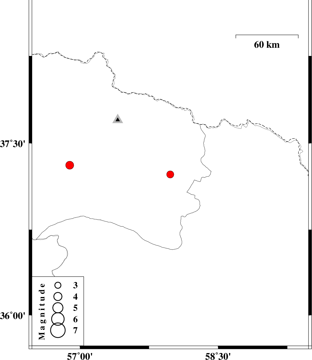 | 2020/07/01 | 04:26:13.9 | 08:56:13.9 | 37.31 | 56.89 | 10 | ML3.9 | Khorasan(north) Province, 27 km South of Ashkhaneh |