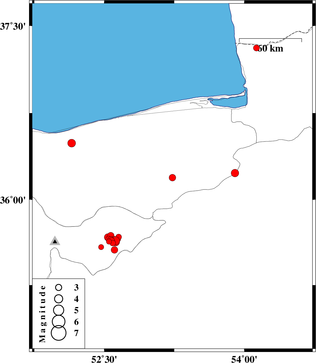 | 2020/07/03 | 20:13:03.6 | 00:43:03.6 | 36.49 | 52.15 | 13 | ML3.8 | Mazandaran Province, 14 km -East of Nur |