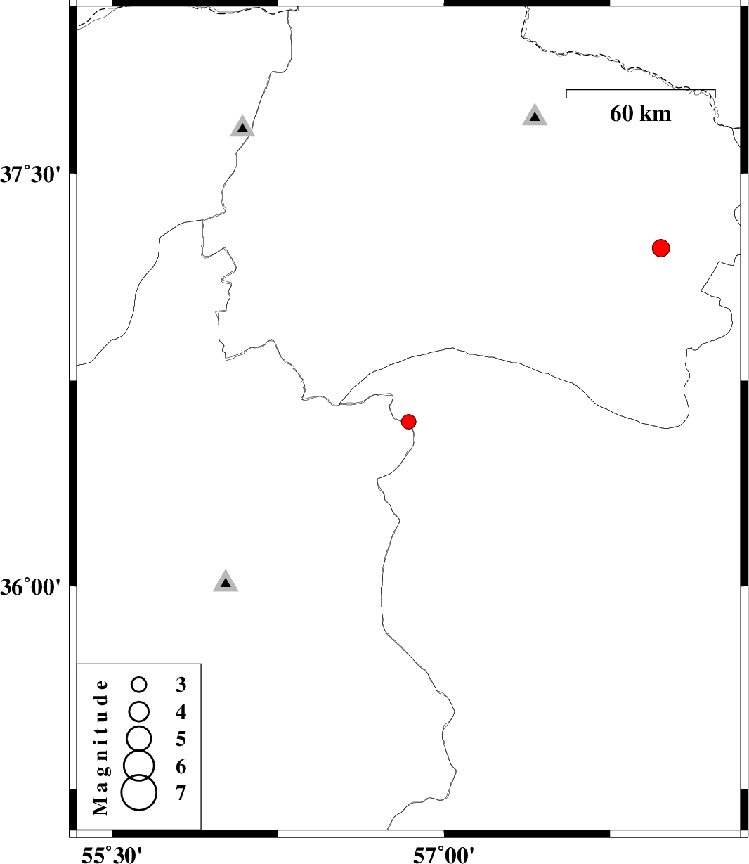 | 2020/07/30 | 18:50:09.8 | 23:20:09.8 | 37.23 | 57.98 | 10 | ML3.5 | Khorasan(north) Province, 17 km South of Shirvan |