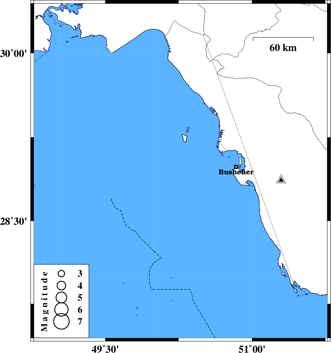 2020/08/10 | 06:40:32.1 | 11:10:32.1 | 28.94 | 50.27 | 22 | ML3.7 | Persian Gulf, 55 km -West of Busheher |