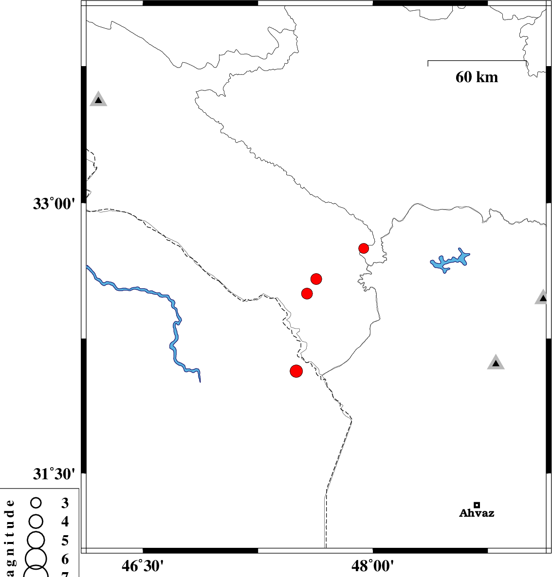 2020/08/15 02:23:14.5 06:53:14.5 32.0747.510 ML3.6 Iraq, 73 km South-East of Dehloran