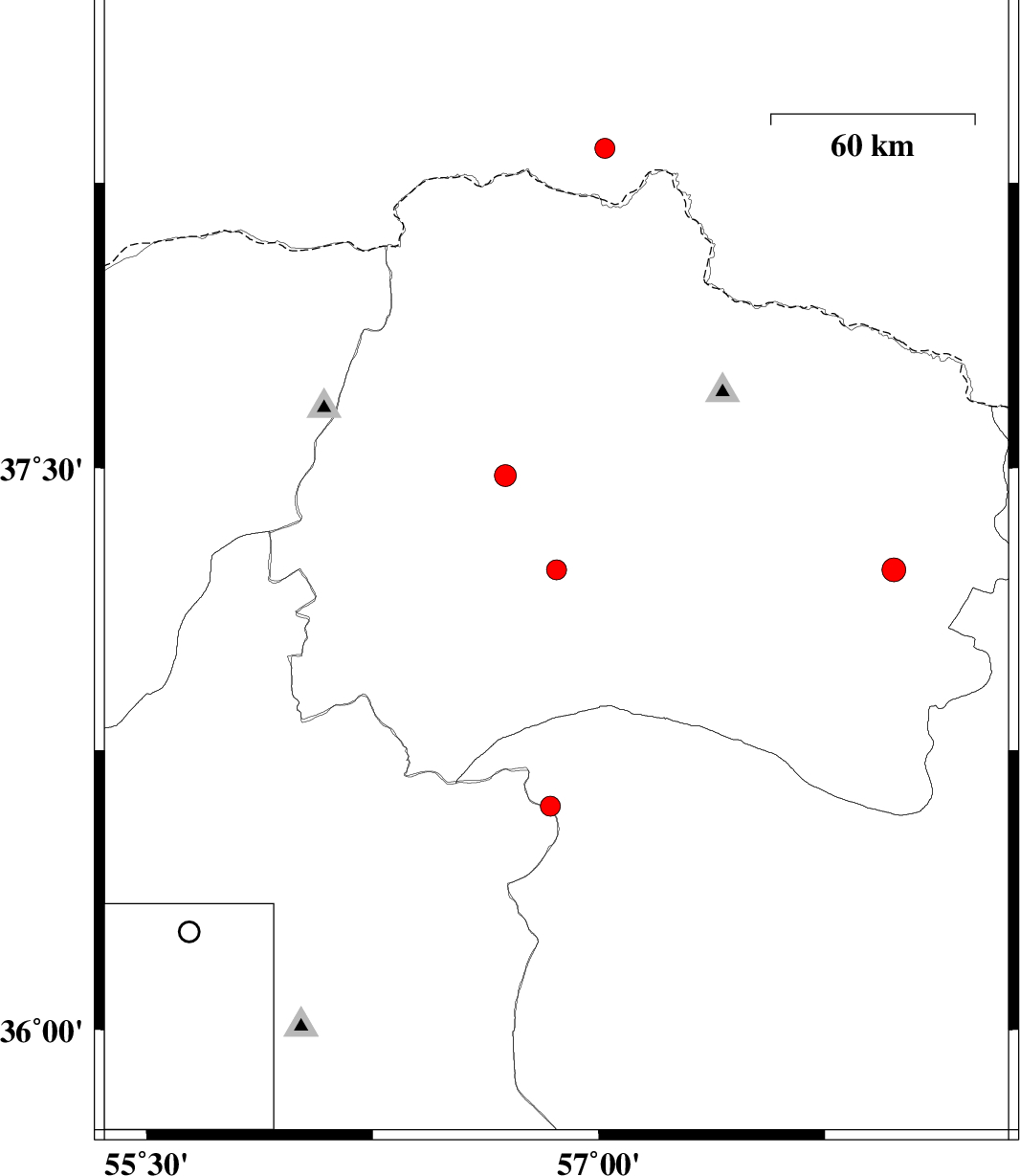 | 2020/08/04 | 13:22:22.7 | 17:52:22.7 | 36.6 | 56.84 | 10 | ML2.9 | Khorasan(center) Province, 56 km South-East of Jajarm | ||