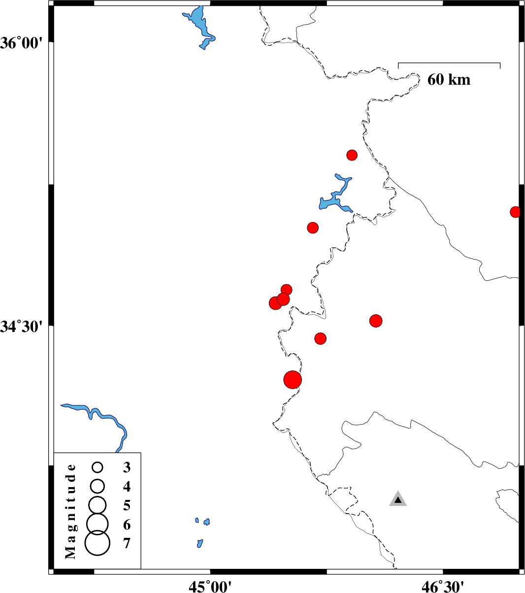 | 2020/08/09 | 09:16:19.9 | 13:46:19.9 | 34.21 | 45.53 | 10 | ML5.2 | Iraq, 34 km South of Qasr-E-Shirin | ||