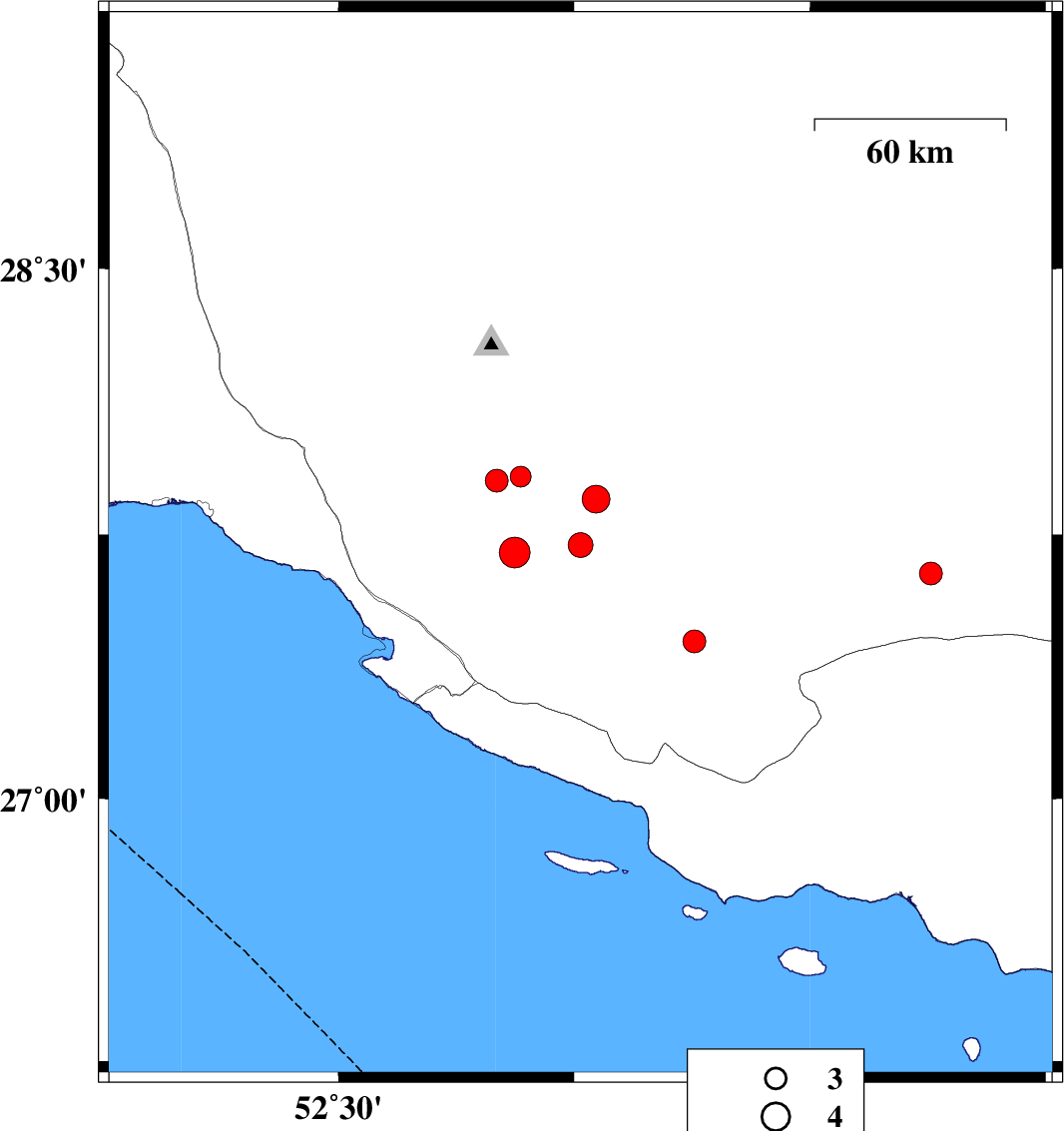 | 2020/08/21 | 05:16:07.3 | 09:46:07.3 | 27.85 | 53.32 | 20 | ML3.9 | Fars Province, 59 km North-East of Lamerd |