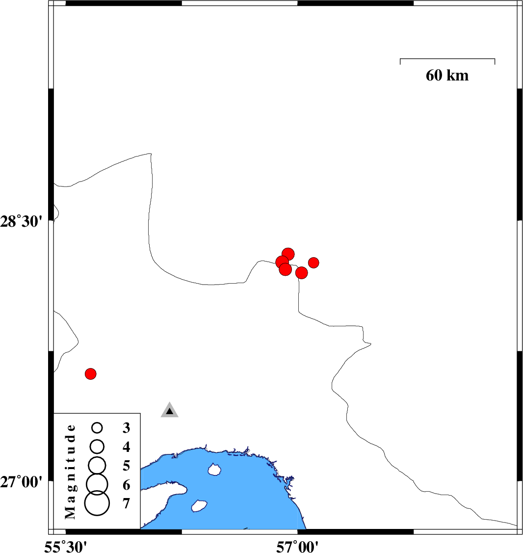 | 2020/08/27 | 21:42:28.4 | 02:12:28.4 | 27.619 | 55.66 | 9 | ML3.3 | Hormozgan Province, 80 km South-West of Hajiabad |