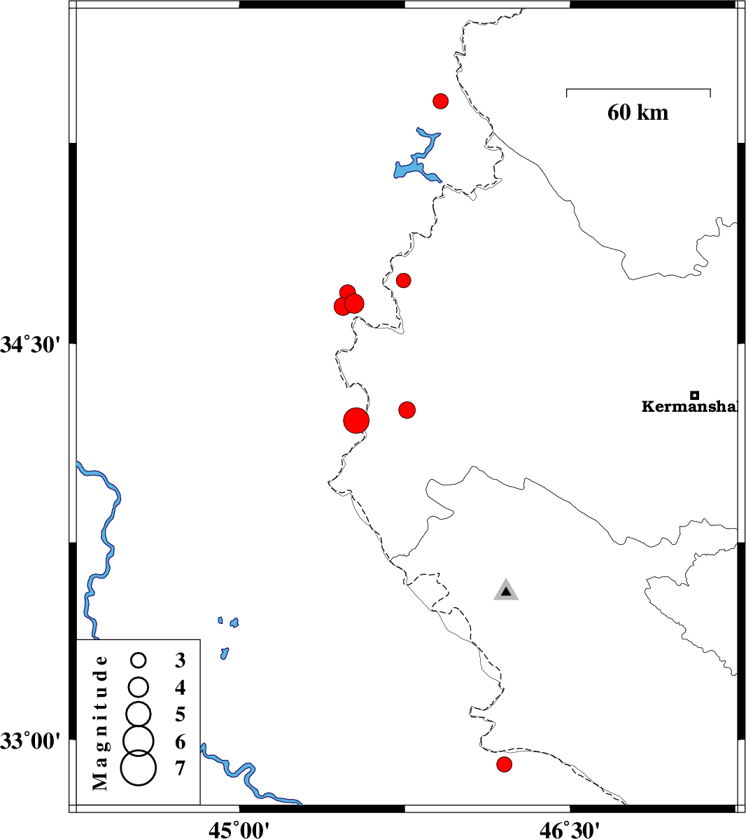| 2020/08/09 | 09:16:19.9 | 13:46:19.9 | 34.21 | 45.53 | 10 | ML5.2 | Iraq, 34 km South of Qasr-E-Shirin |