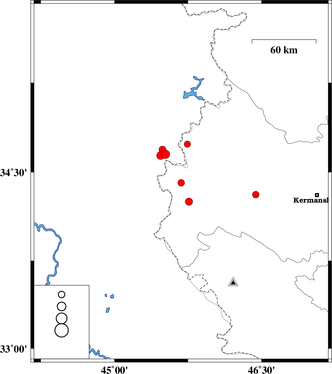 2020/09/07 | 06:30:38.6 | 11:00:38.6 | 34.25 | 45.76 | 10 | ML3.4 | Kermanshah Province, 19 km North-West of Gilan-E-Gharb | ||