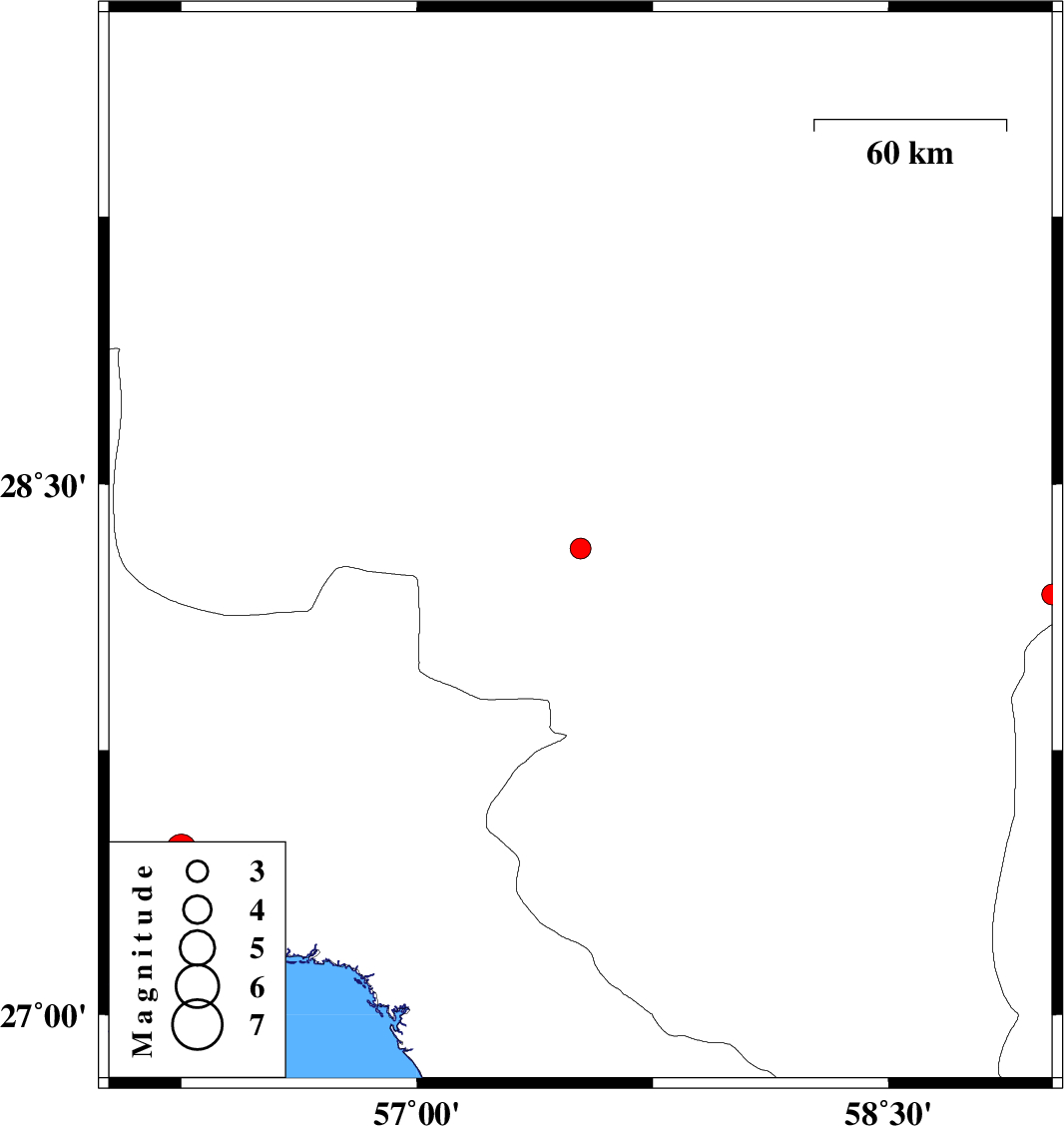 | 2020/09/13 | 02:28:31.7 | 06:58:31.7 | 28.19 | 59.02 | 10 | ML3 | Kerman Province, 133 km North-East of Kahnuj | ||