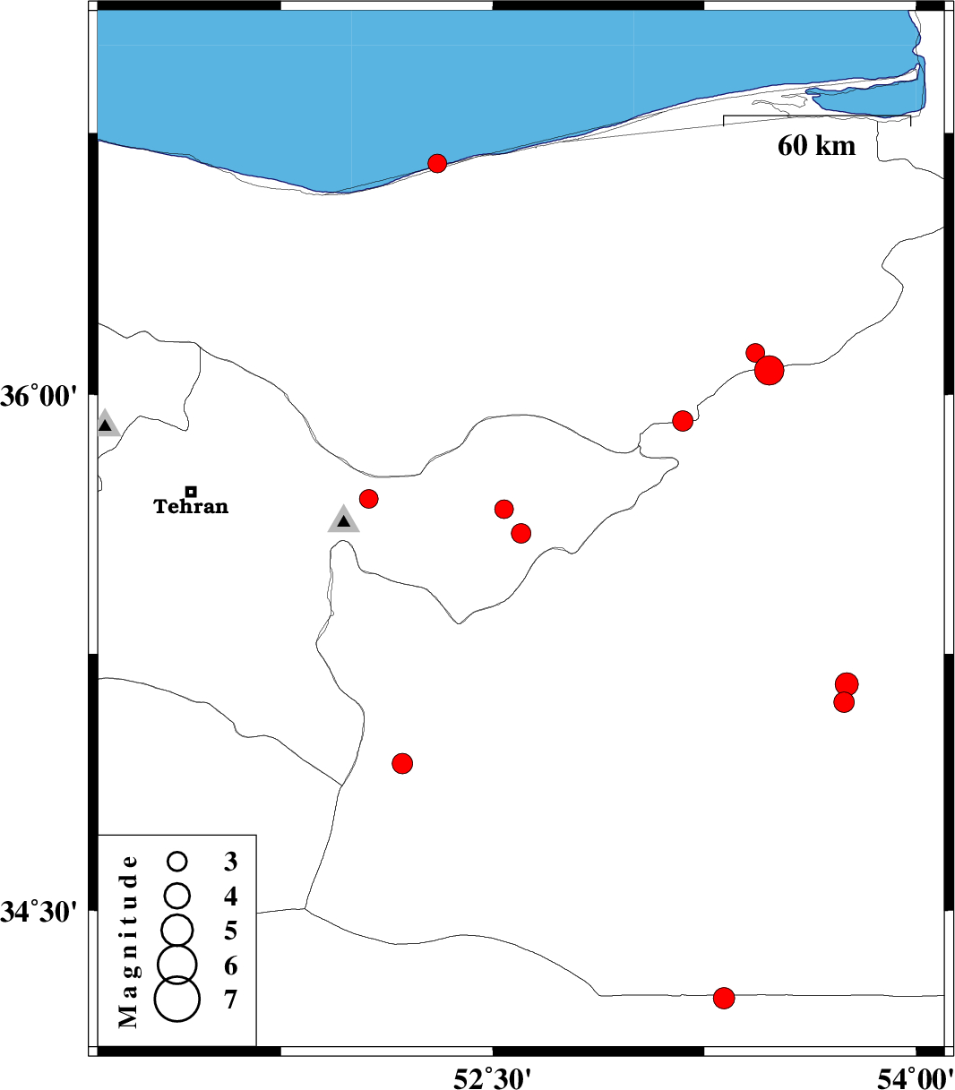 | 2020/08/27 | 14:11:10.4 | 18:41:10.4 | 36.663 | 52.304 | 12 | ML3 | Caspian Sea, 4 km of Mahmud Abad |