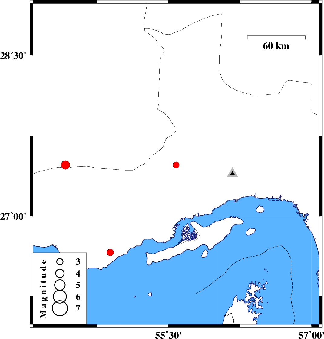 | 2020/09/14 | 01:36:08.1 | 06:06:08.1 | 26.66 | 54.89 | 10 | ML3.2 | Hormozgan Province, 15 km North of Bandar-e lengeh |