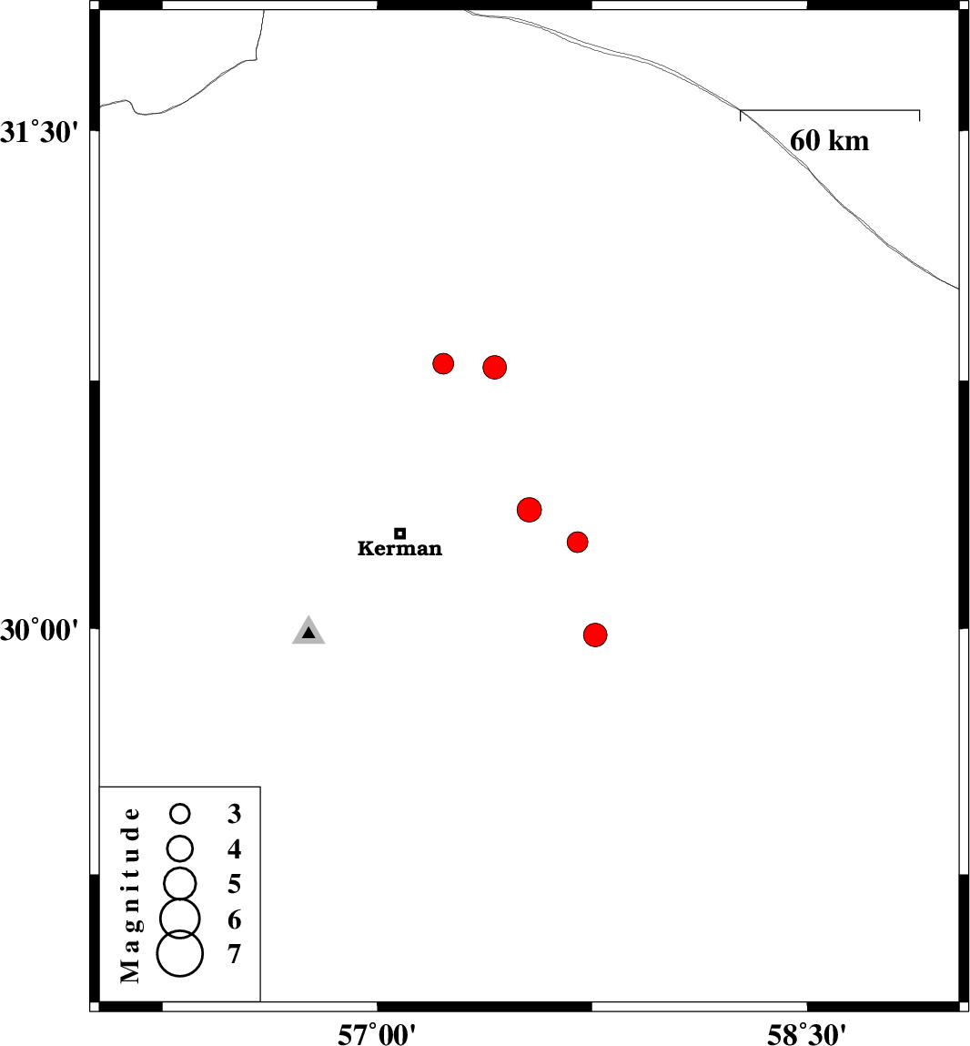 | 2020/09/19 | 09:23:13.5 | 13:53:13.5 | 30.8 | 57.23 | 10 | ML3.2 | Kerman Province, 59 km North-East of Kerman | ||