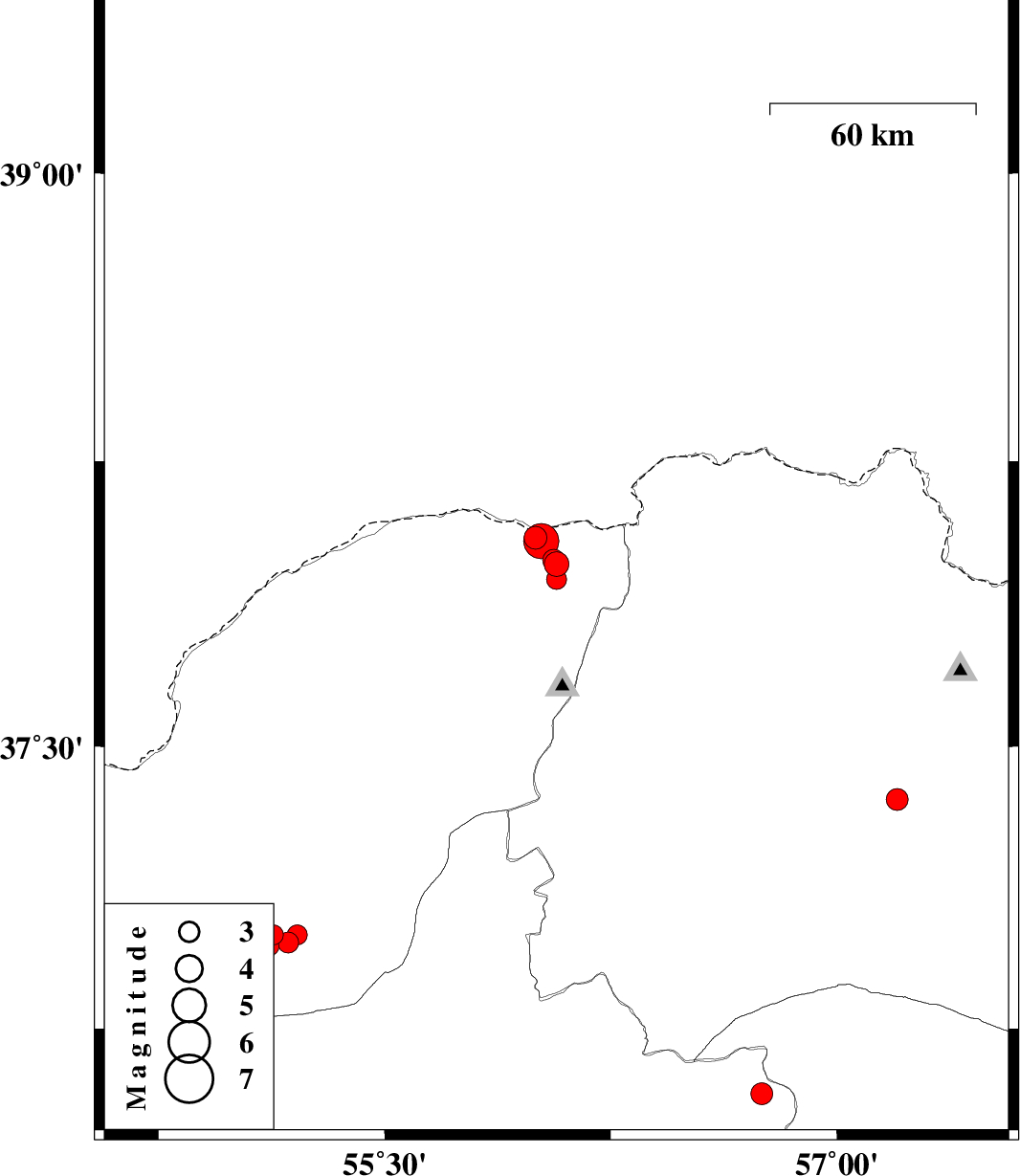 2020/09/26 07:17:18.1 10:47:18.1 37.9456.0710 ML3 Golestan Province, 80 km North-East of Kalaleh