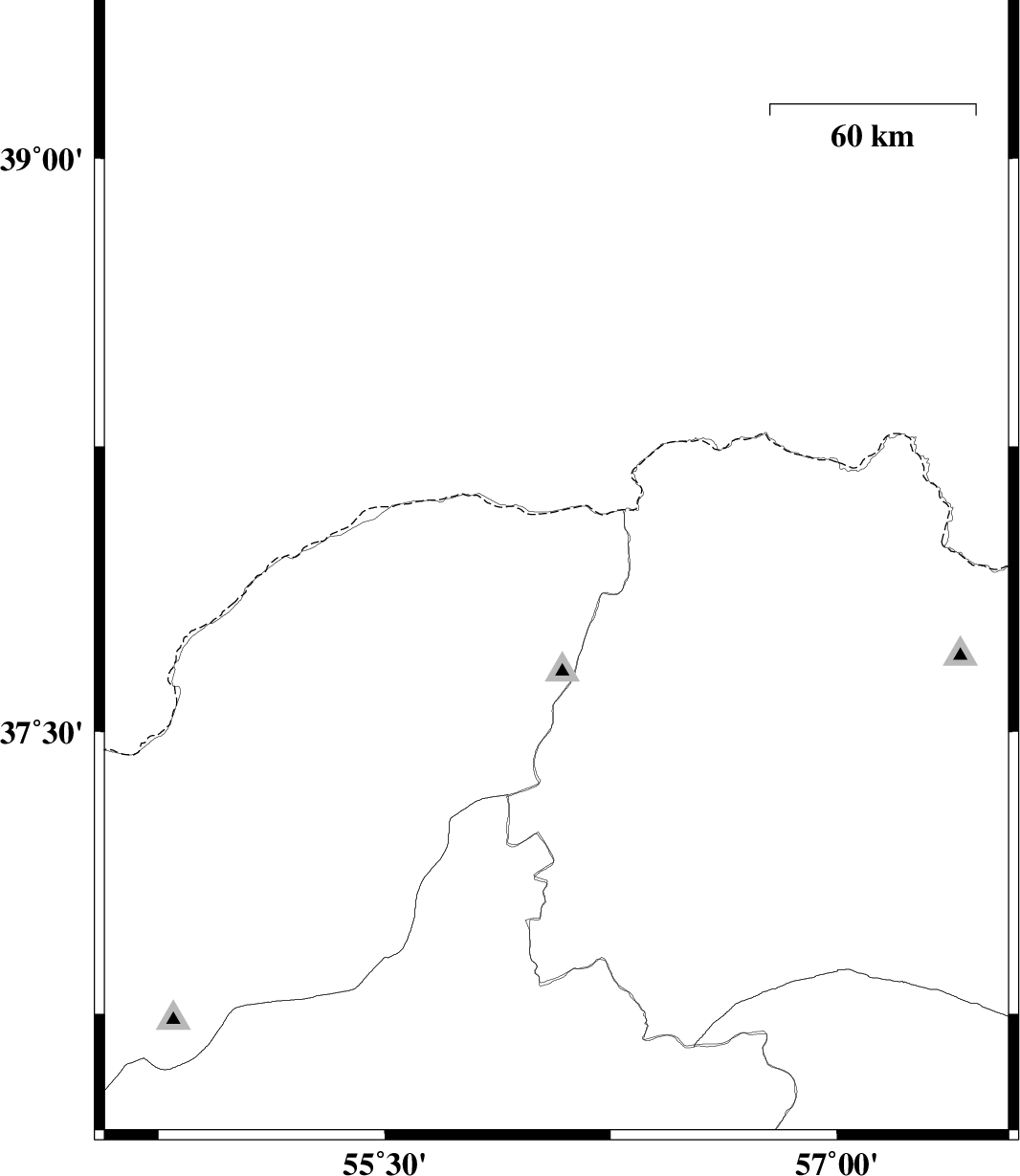Map Region : lat:36.44-39.44  lon:54.57-57.57