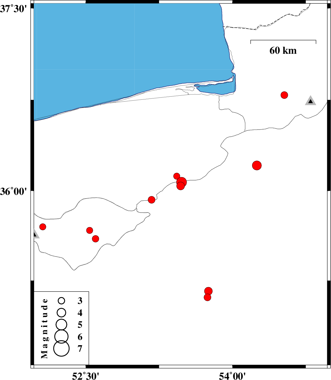 | 2020/09/10 | 11:20:52.7 | 15:50:52.7 | 36.12 | 53.43 | 10 | ML3 | Mazandaran Province, 34 km -East of Pol-E-Sefid | ||