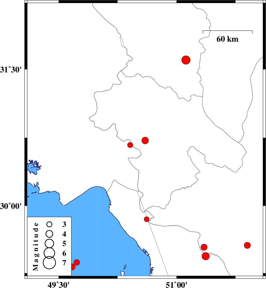 | 2020/09/29 | 04:08:03.6 | 07:38:03.6 | 31.6 | 51.12 | 10 | ML5 | Chaharmahal Bakhtiari Province, 32 km North-East of Lordegan | ||