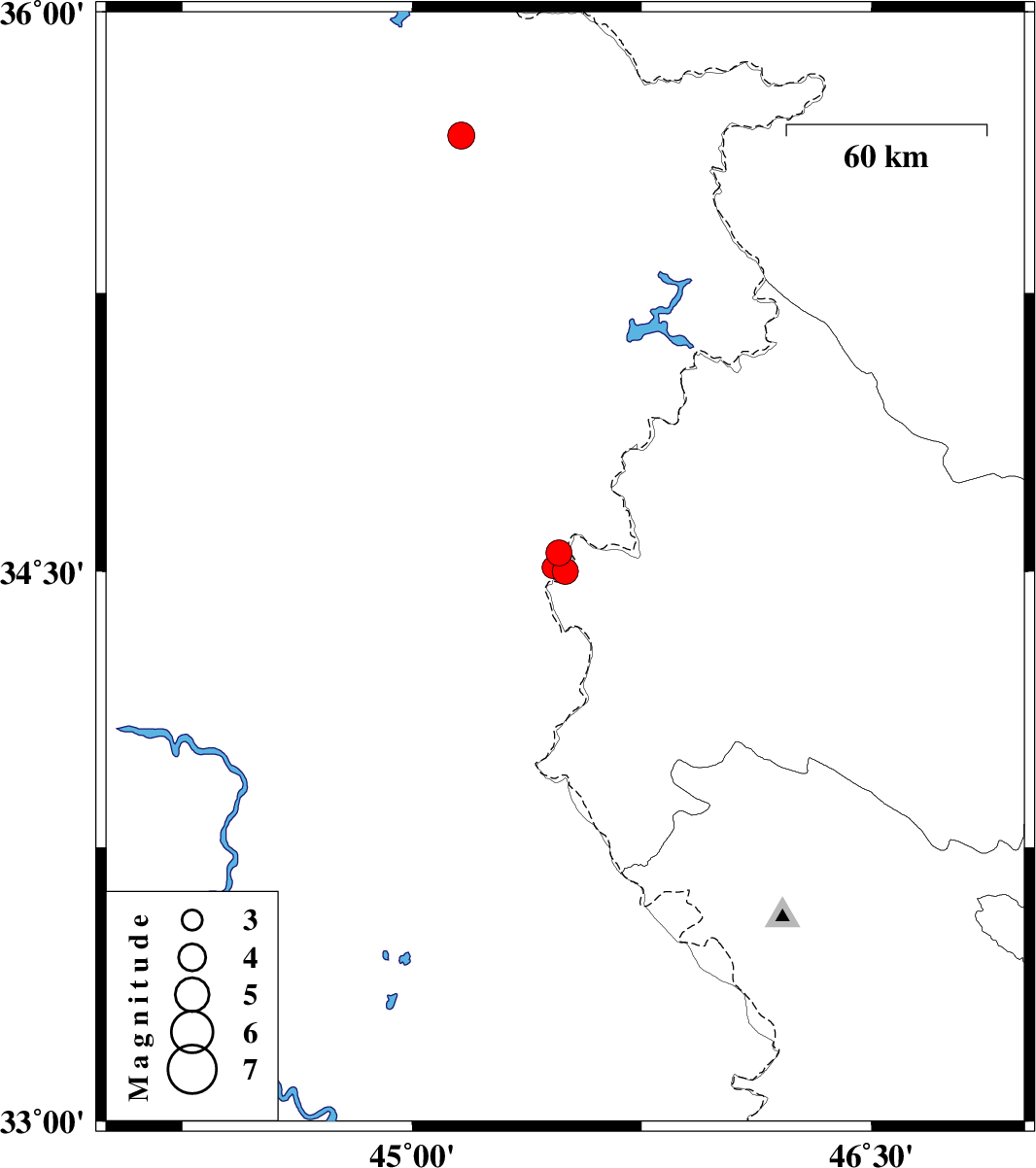 2020/09/28 15:22:38.5 18:52:38.5 34.5145.4610 ML3.2 Iraq, 11 km -West of Qasr-E-Shirin