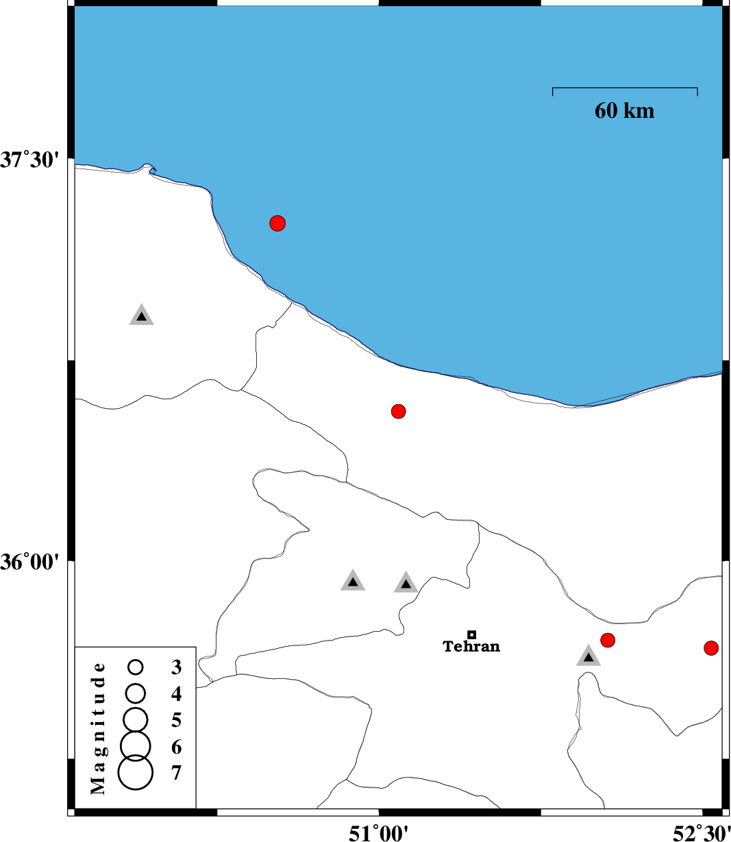 | 2020/09/12 | 00:45:47.5 | 05:15:47.5 | 37.26 | 50.53 | 10 | ML3.2 | Caspian Sea, 25 km North-East of Rudsar | ||