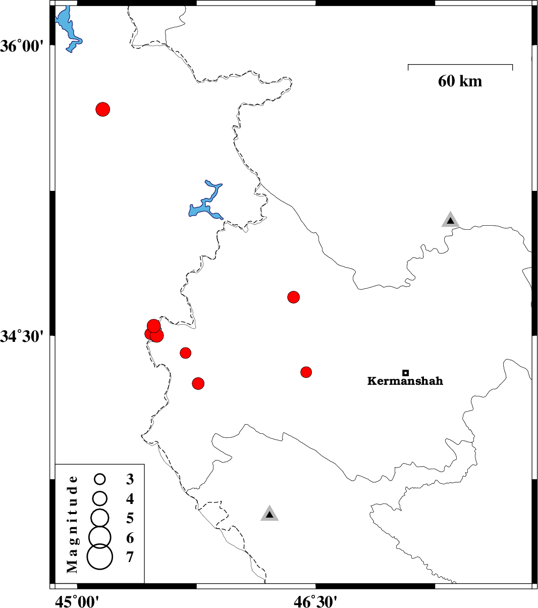 | 2020/09/07 | 06:30:38.6 | 11:00:38.6 | 34.25 | 45.76 | 10 | ML3.4 | Kermanshah Province, 19 km North-West of Gilan-E-Gharb |
