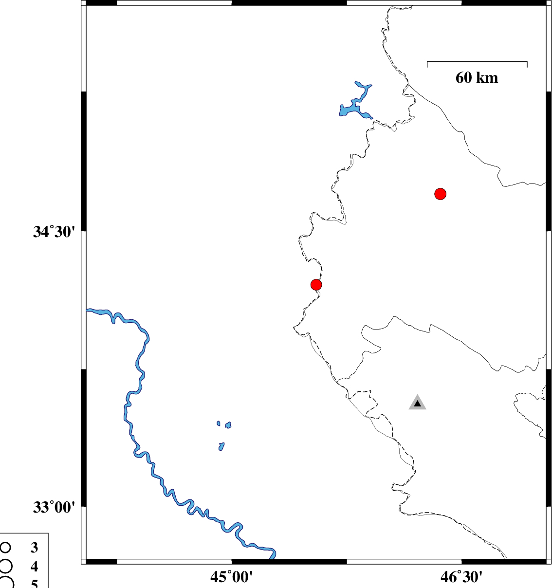 | 2020/10/06 | 22:26:00.7 | 01:56:00.7 | 34.21 | 45.55 | 10 | ML3.3 | Iraq, 34 km South of Qasr-E-Shirin | ||