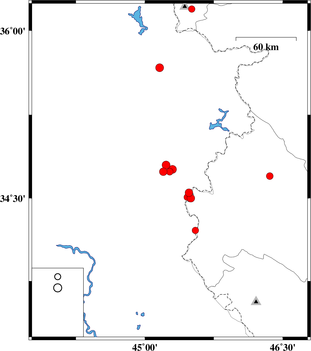 2020/10/18 | 17:25:24.3 | 20:55:24.3 | 34.8 | 45.23 | 10 | ML4 | Iraq, 45 km North-West of Qasr-E-Shirin | ||