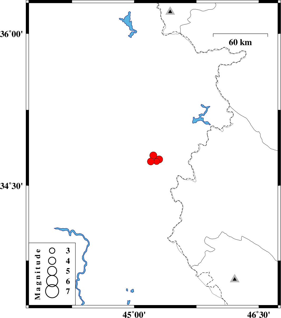 | 2020/10/18 | 17:25:24.3 | 20:55:24.3 | 34.8 | 45.23 | 10 | ML4 | Iraq, 45 km North-West of Qasr-E-Shirin | ||