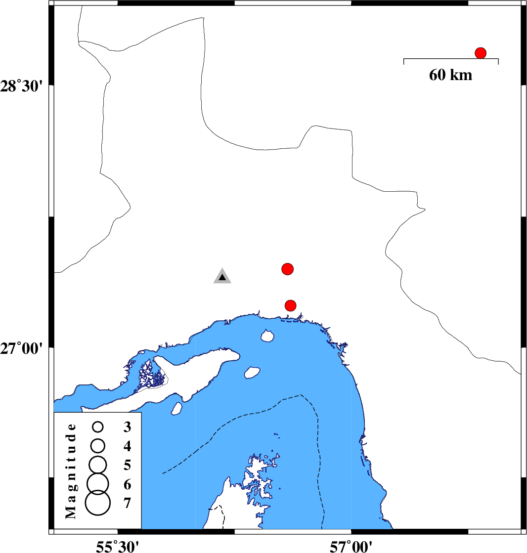 2020/10/24 | 08:01:38.1 | 11:31:38.1 | 27.45 | 56.59 | 10 | ML3.4 | Hormozgan Province, 42 km North-East of Bandar-e abbas | ||