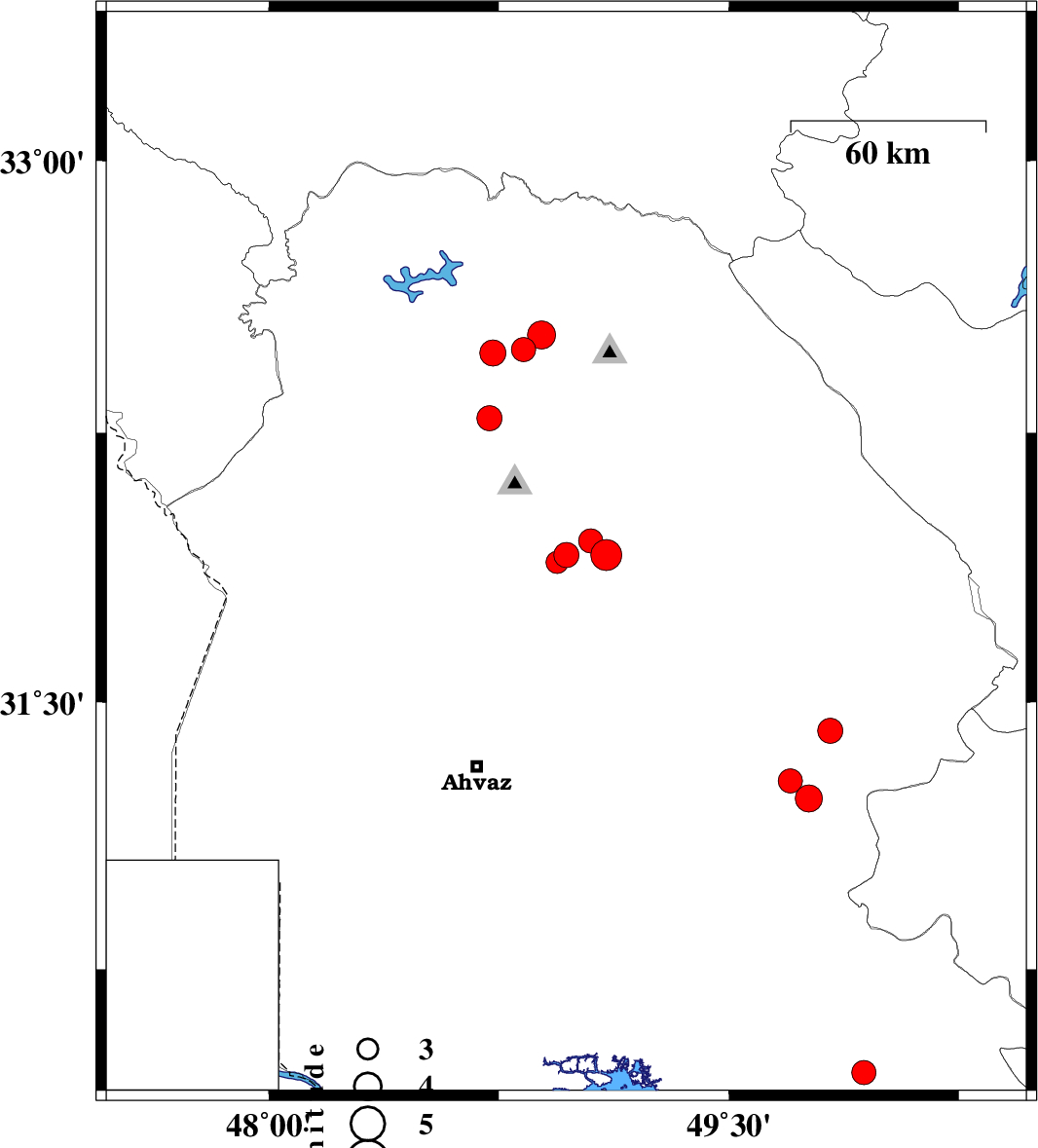 | 2020/11/05 | 11:17:04.3 | 14:47:04.3 | 31.89 | 48.94 | 10 | ML3.2 | Khoozestan Province, 19 km South of Shushtar | ||