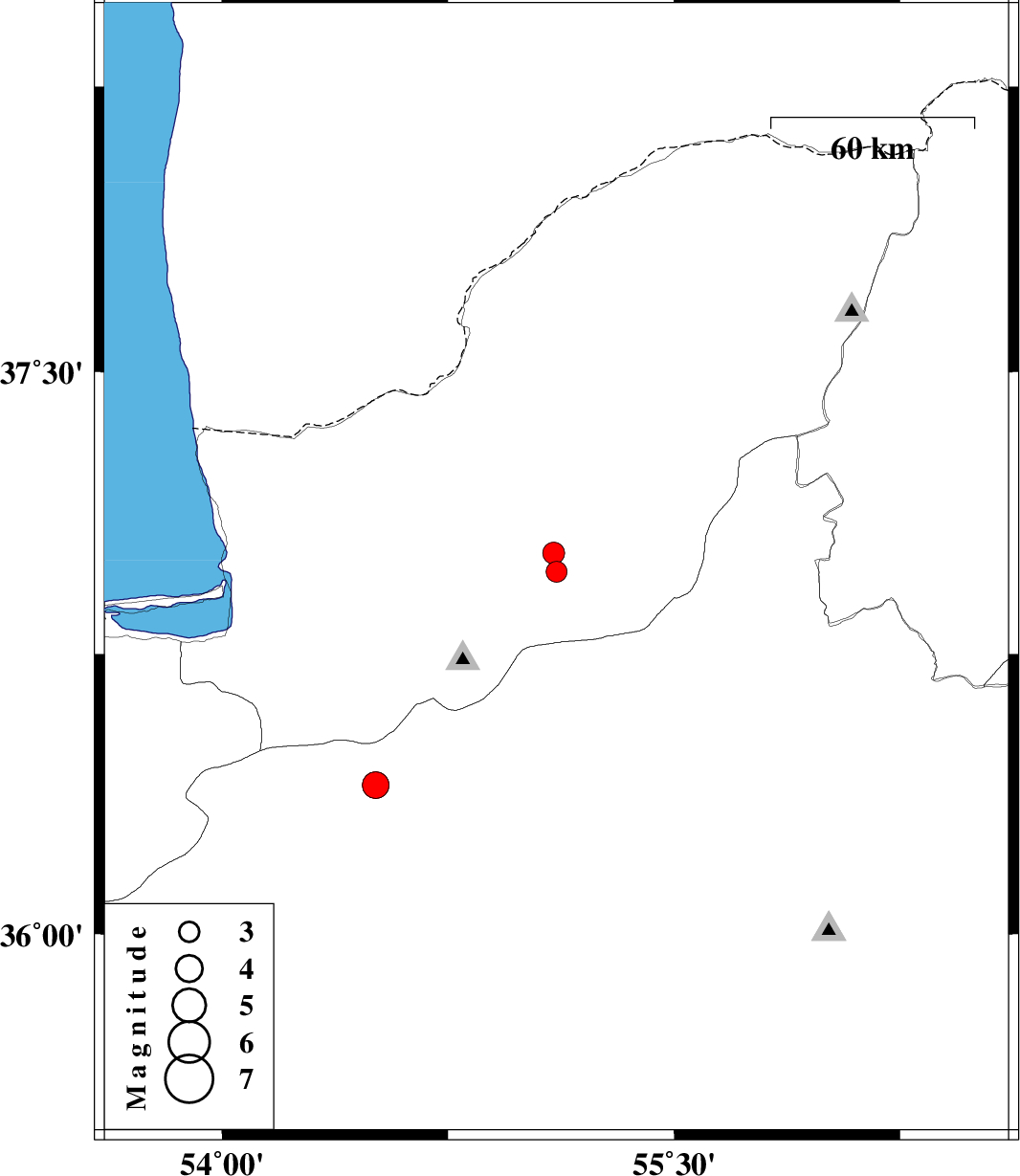 | 2020/11/21 | 11:10:05.2 | 14:40:05.2 | 36.4 | 54.51 | 10 | ML3.9 | Semnan Province, 30 km North-East of Damghan | ||