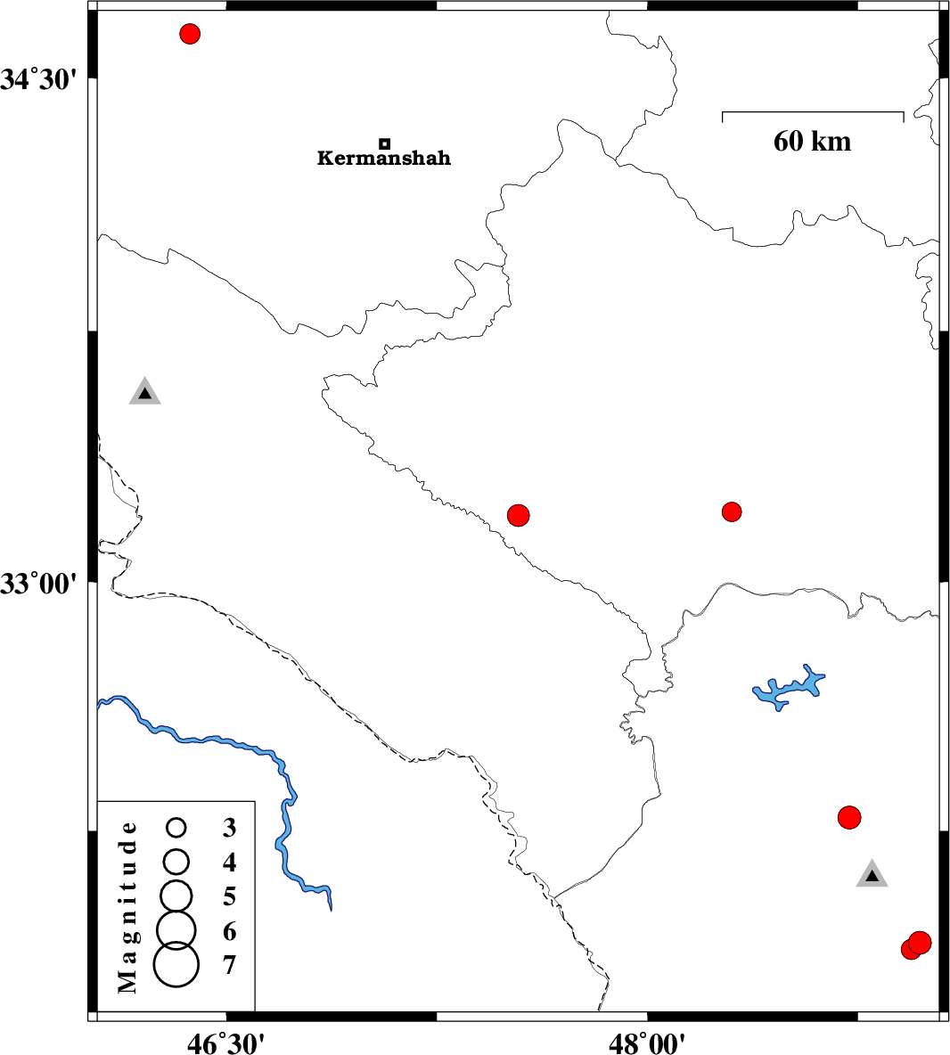 | 2020/11/04 | 20:36:47.1 | 00:06:47.1 | 34.63 | 46.37 | 10 | ML3.3 | Kermanshah Province, 23 km South of Javanrud |