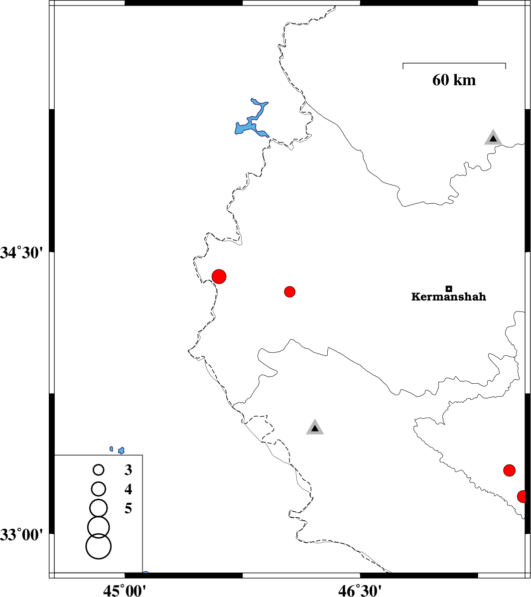 | 2020/12/07 | 22:24:51.1 | 01:54:51.1 | 34.37 | 45.6 | 15 | ML4.1 | Kermanshah Province, 16 km South of Qasr-E-Shirin | ||