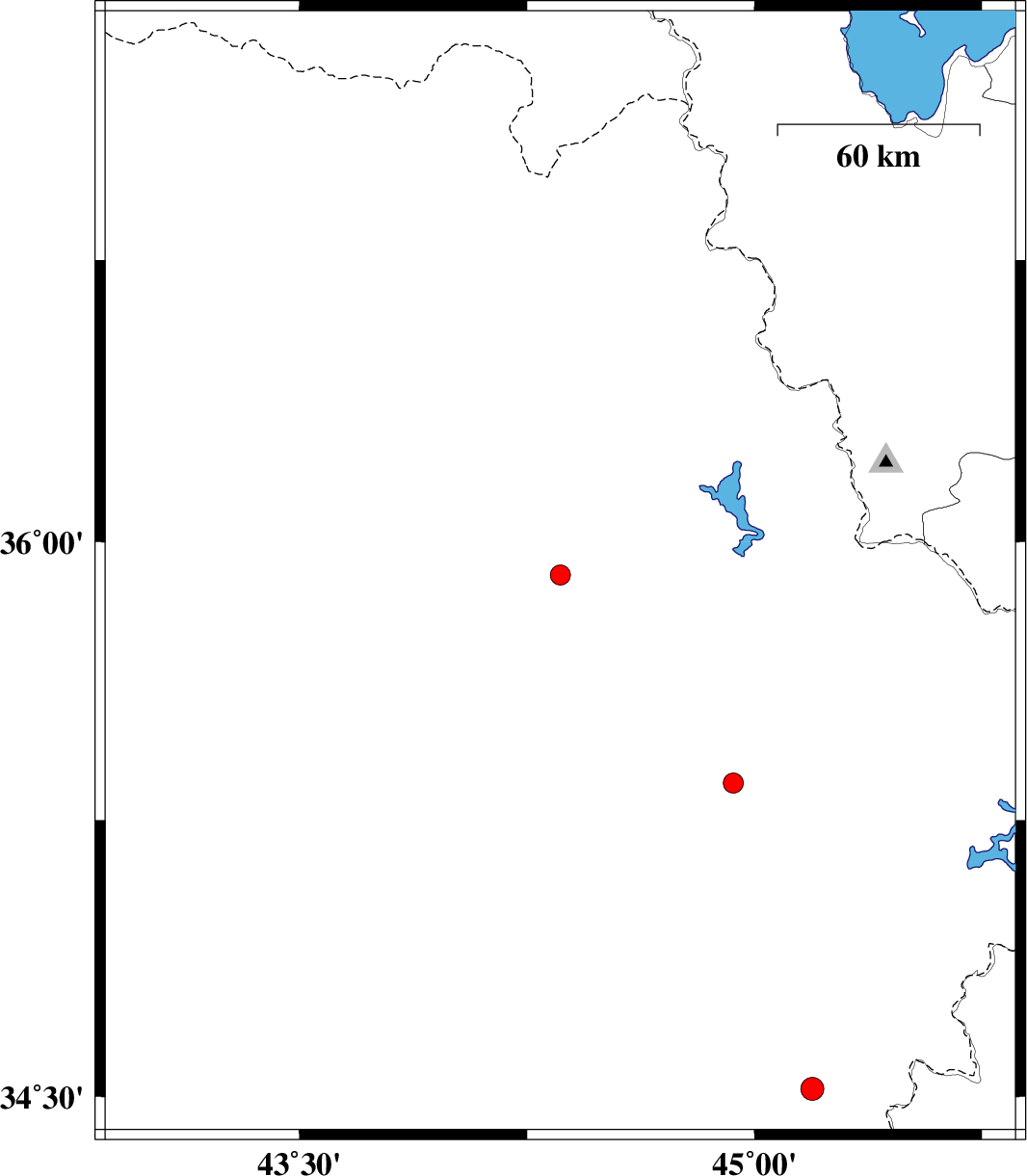 | 2020/12/18 | 14:48:56.6 | 18:18:56.6 | 35.91 | 44.36 | 10 | ML2.9 | Iraq | ||