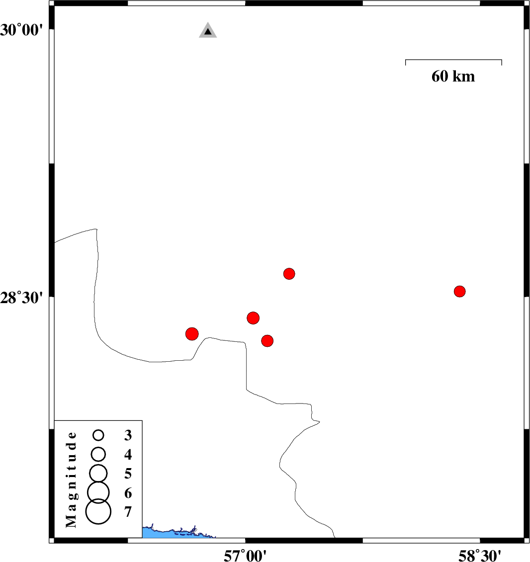 2020/12/22 | 21:29:46.2 | 00:59:46.2 | 28.53 | 58.37 | 10 | ML:3.3 | Kerman Province, 64 km South of Bam |