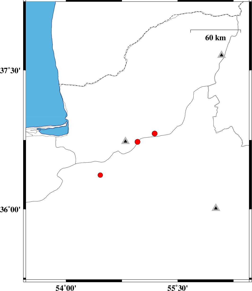 | 2020/12/12 | 16:19:04.5 | 19:49:04.5 | 36.82 | 55.19 | 10 | ML3.2 | Golestan Province, 22 km South of Ramian |