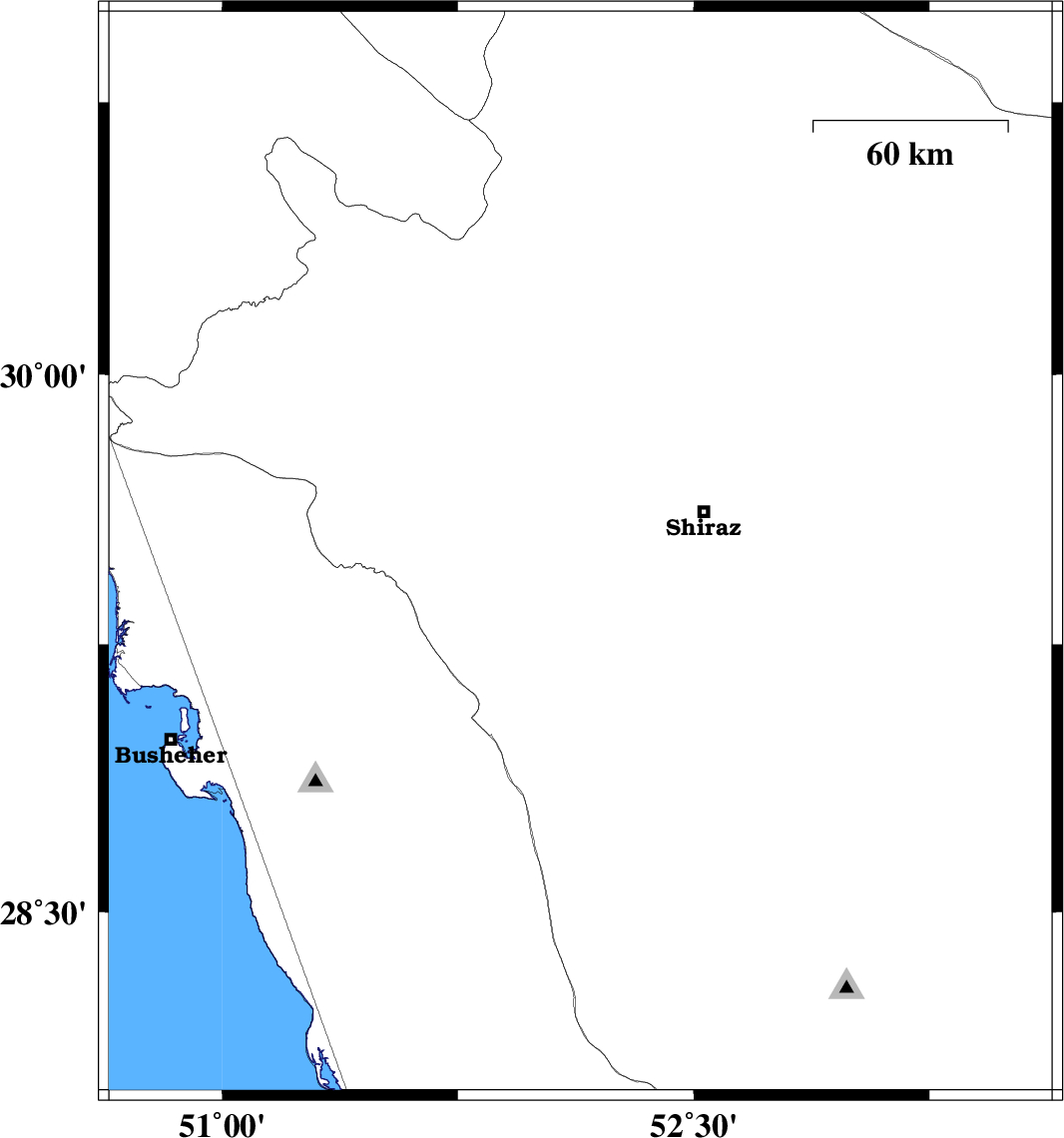 | 2020/12/13 | 00:33:56.6 | 04:03:56.6 | 29.51 | 51.27 | 10 | ML3.3 | Bushehr Province, 28 km North of Borazjan |