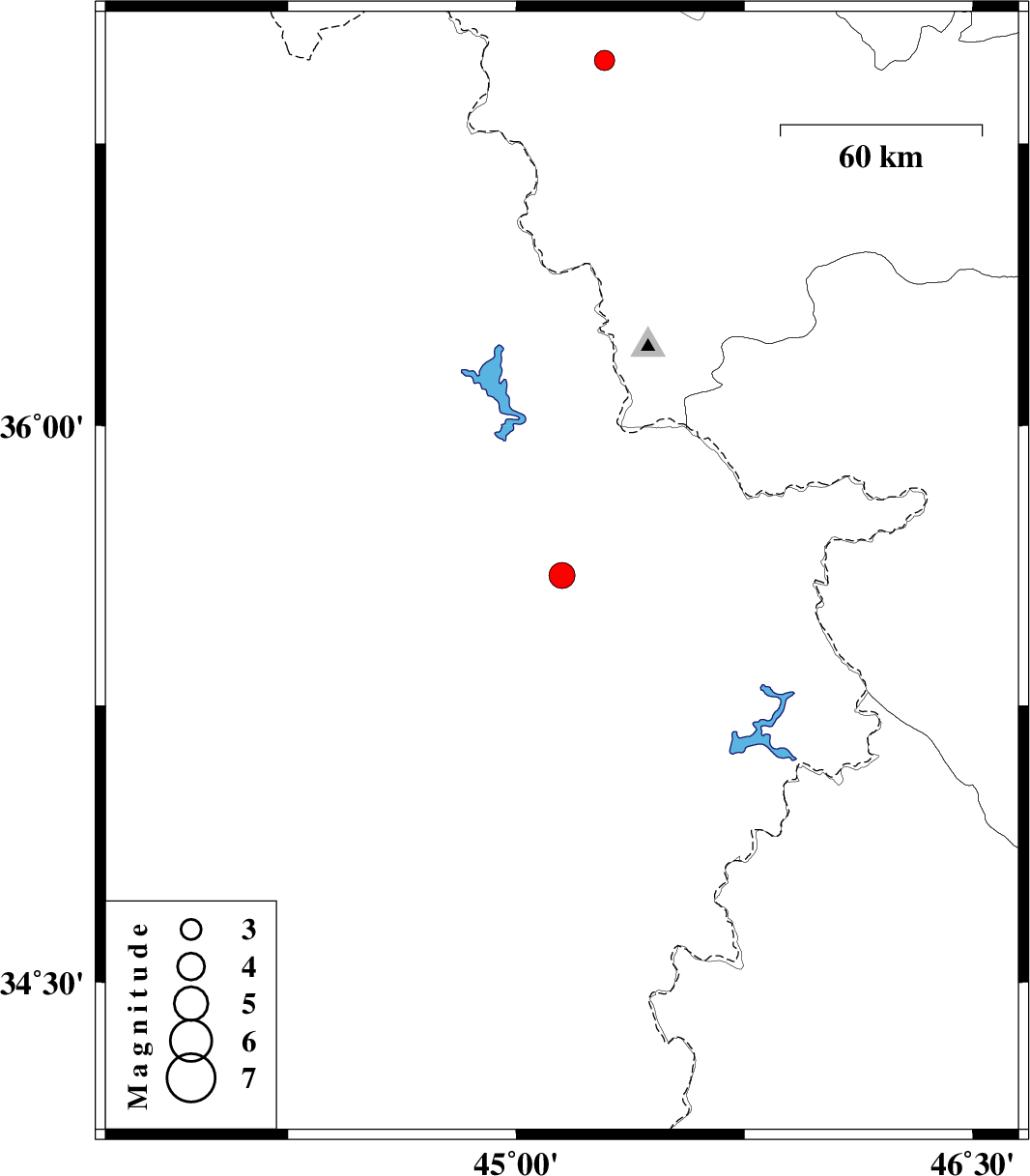 | 2021/01/09 | 19:26:38.6 | 22:56:38.6 | 36.97 | 45.29 | 10 | ML3 | Azarbaijan Gharbi Province, 8 km of Naqadeh |