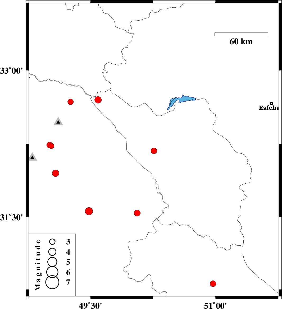 | 2020/12/22 | 17:25:32.3 | 20:55:32.3 | 32.7 | 49.59 | 10 | ML3.7 | Chaharmahal Bakhtiari Province, 55 km South-West of Fereydunshahr |