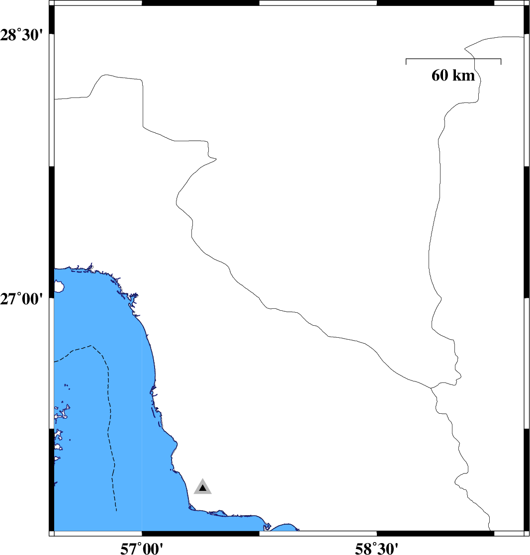 2021/01/07 05:22:41.1 08:52:41.1 27.115810 ML3.3 Kerman Province, 60 km South-East of Manujan