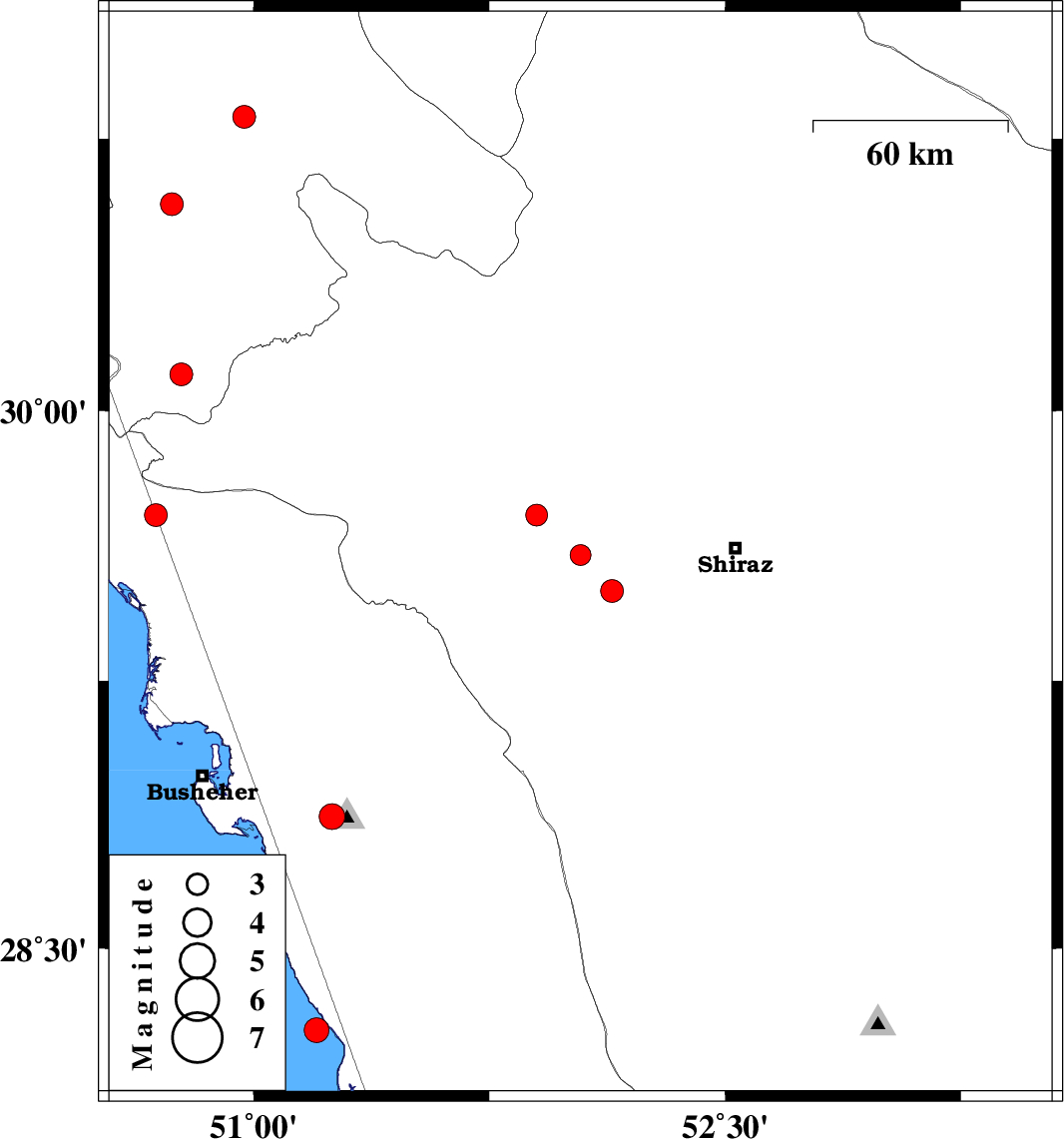 | 2021/01/04 | 12:58:54.6 | 16:28:54.6 | 28.87 | 51.25 | 10 | ML3.7 | Bushehr Province, 1 km of Ahram |