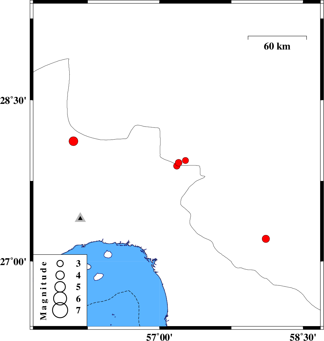 | 2021/01/24 | 00:57:05.8 | 04:27:05.8 | 27.21 | 58.11 | 10 | ML3.5 | Kerman Province, 65 km South-East of Manujan | ||