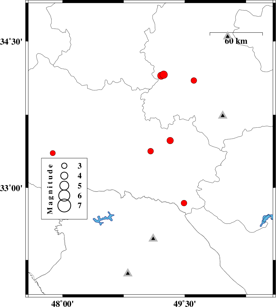 2021/01/28 07:24:42.3 10:54:42.3 33.3849.0510 ML4.1 Lorestan Province, 12 km South of Dorud