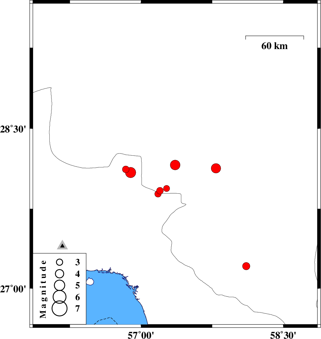 | 2021/01/28 | 18:40:15.1 | 22:10:15.1 | 28.13 | 57.79 | 14 | Mb4.5 | Kerman Province, 22 km North of Kahnuj | ||
