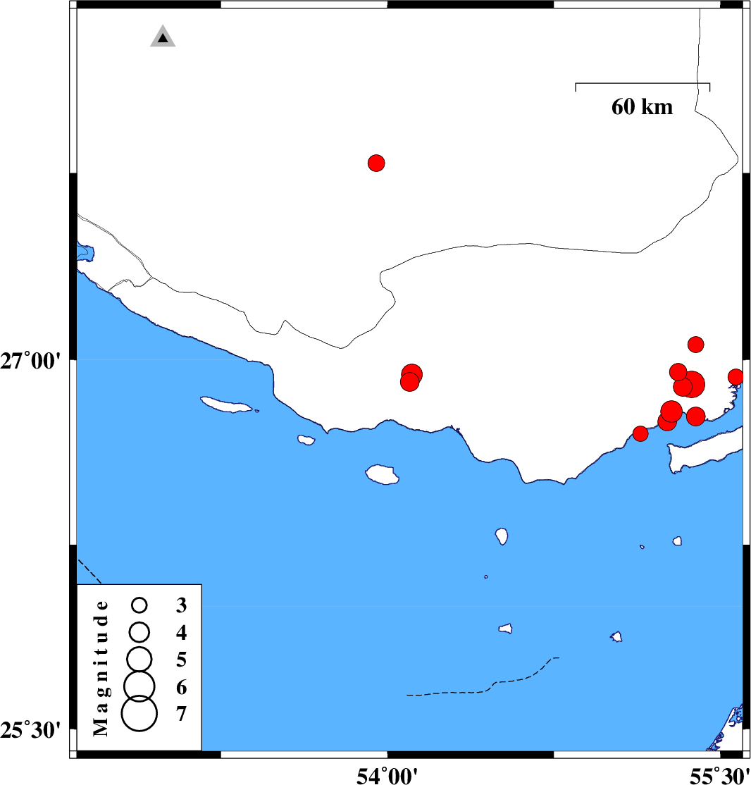 2021/01/15 | 21:31:05.9 | 01:01:05.9 | 26.9 | 55.37 | 29 | Mb5.4 | Hormozgan Province, 66 km North-East of Bandar-e lengeh |