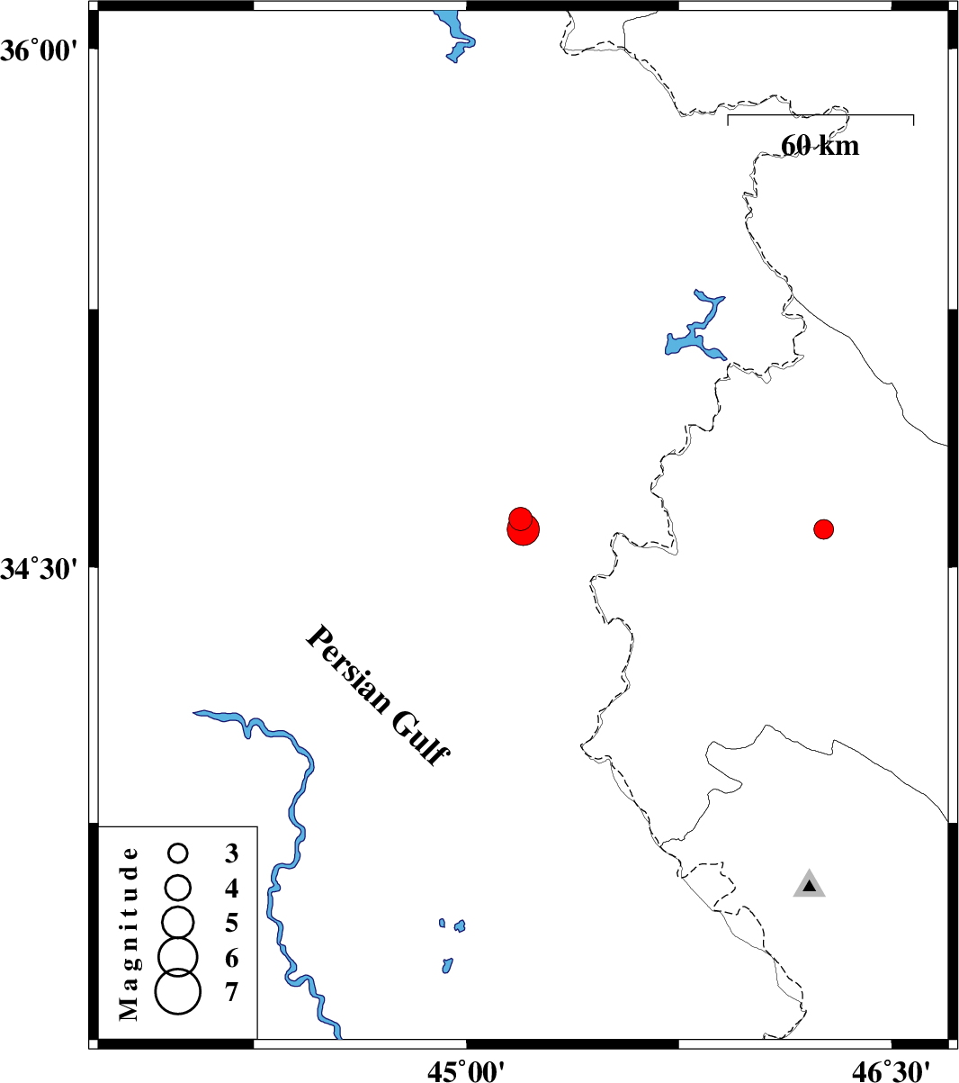 2021/02/11 | 23:22:22.9 | 02:52:22.9 | 34.64 | 45.19 | 29 | ML:3.7 | Iraq, 39 km North-West of Qasr-E-Shirin | ||