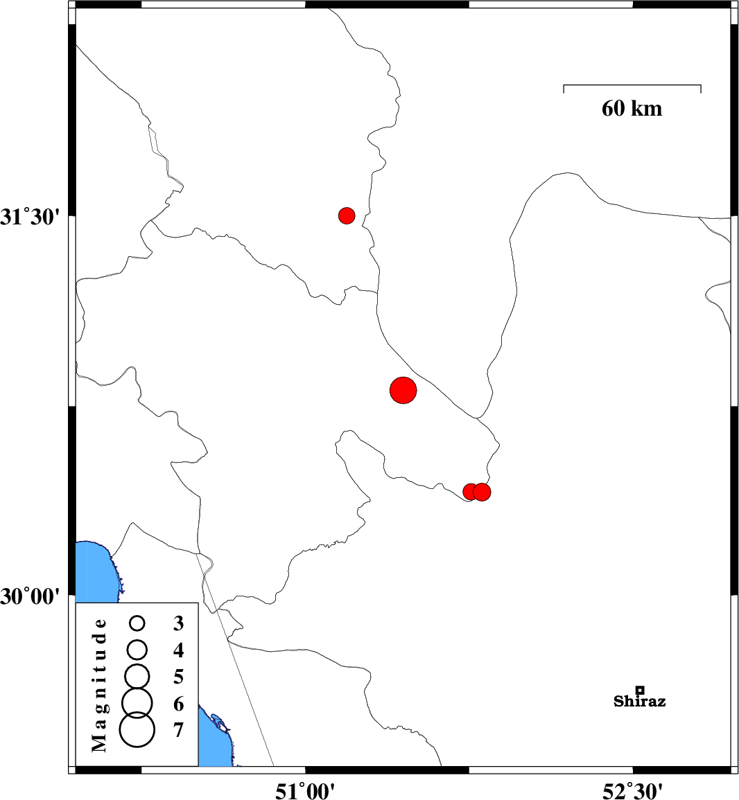 | 2021/02/13 | 14:46:11.8 | 18:16:11.8 | 30.409 | 51.809 | 12 | ML3.7 | Fars Province, 24 km North-West of Ardakan | ||