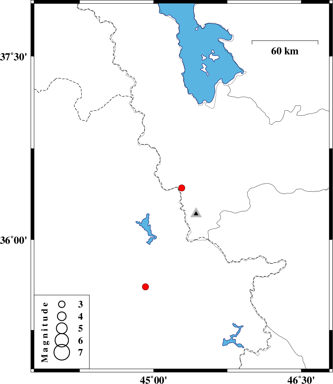 | 2021/02/15 | 06:08:29.2 | 09:38:29.2 | 36.426 | 45.286 | 7 | ML3 | Azarbaijan Gharbi Province, 34 km South-East of Piranshahr | ||