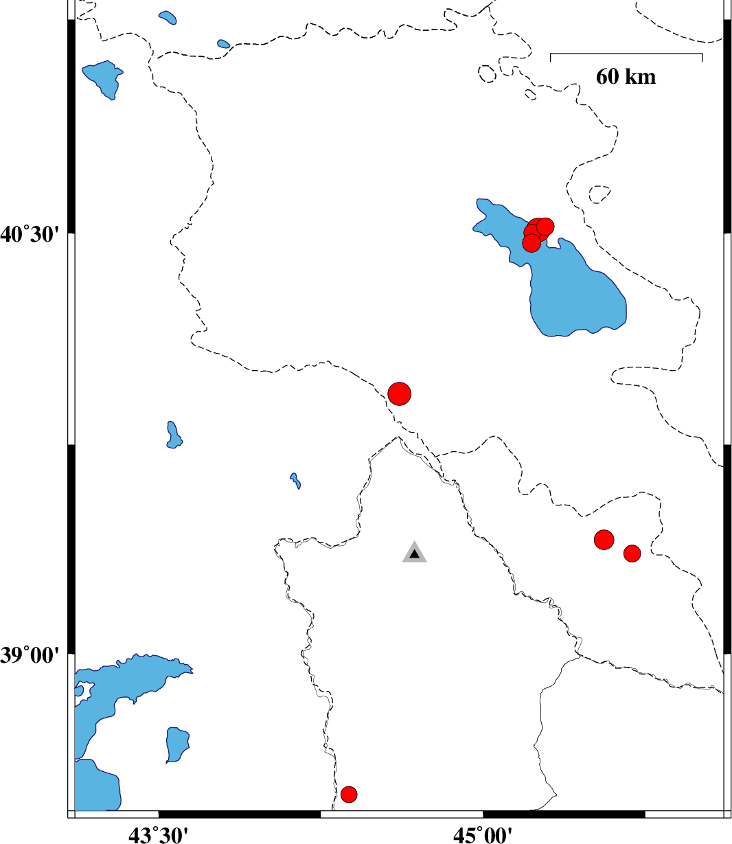 | 2021/02/13 | 11:29:24.3 | 14:59:24.3 | 39.931 | 44.613 | 8 | ML4.8 | Turkey, 29 km South of Yerevan | ||