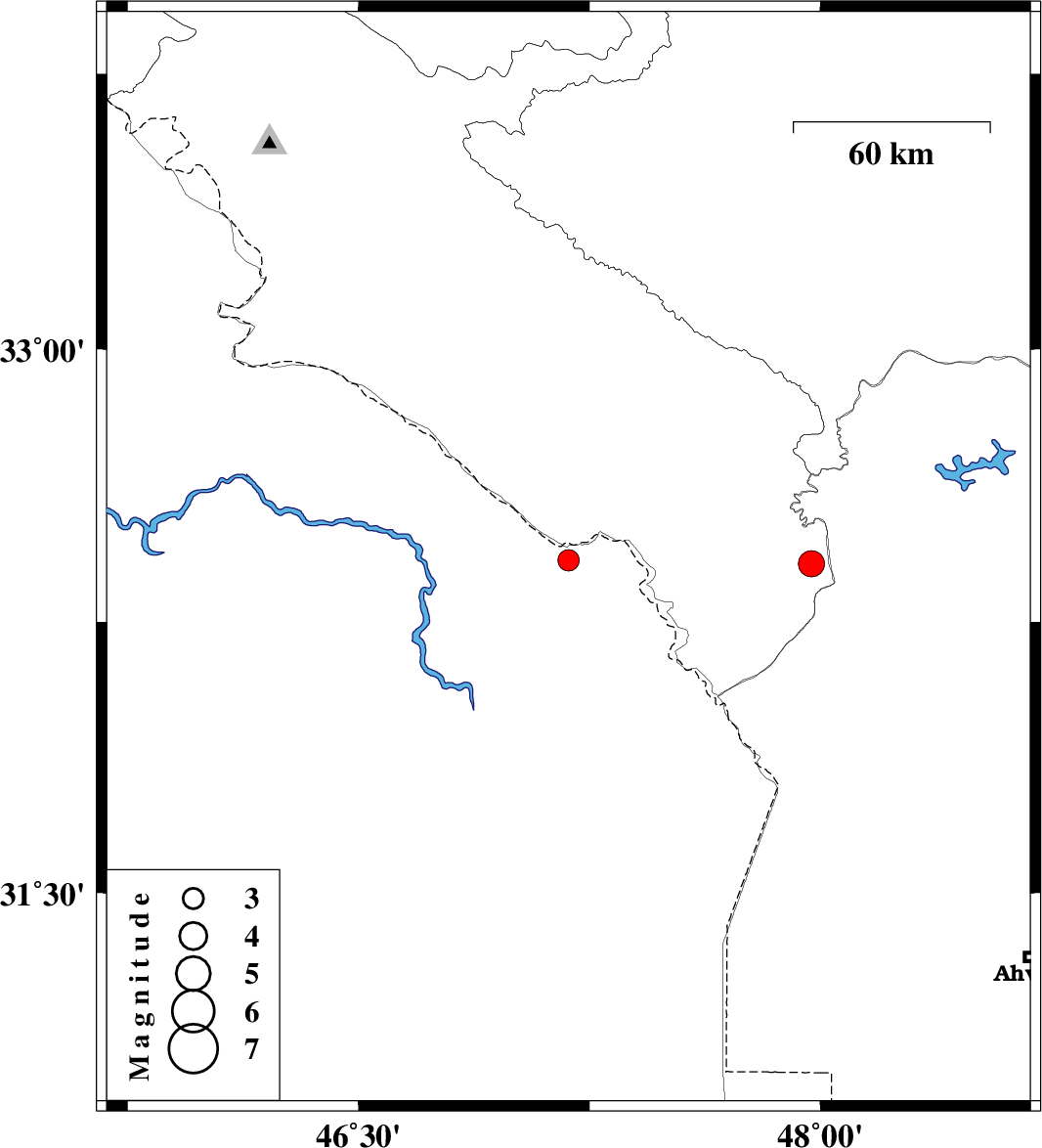 | 2021/03/08 | 03:24:19.0 | 06:54:19.0 | 32.42 | 47.182 | 19 | ML3.1 | Iraq, 31 km South of Dehloran | ||