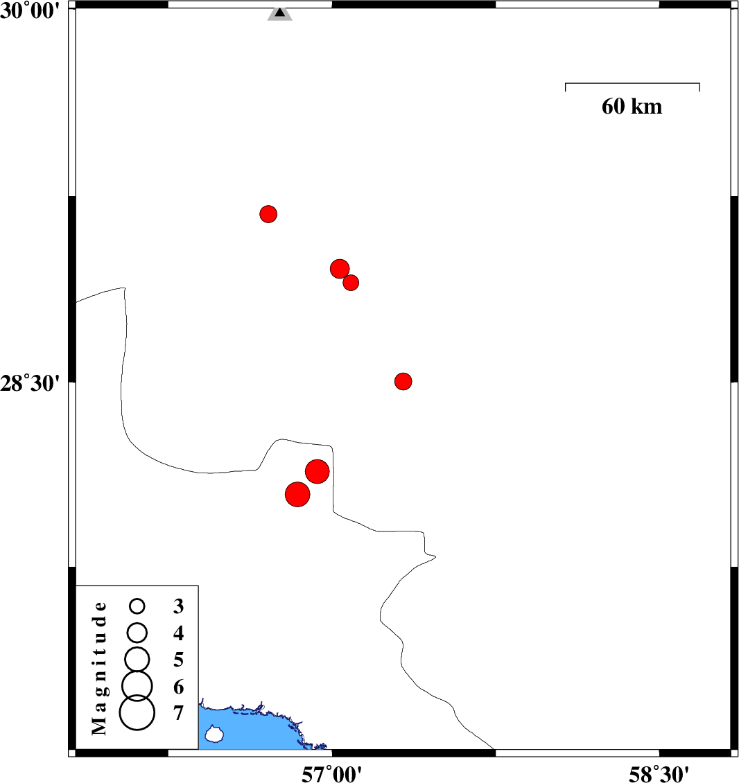 2021/04/11 | 17:26:57.4 | 21:56:57.4 | 28.958 | 57.036 | 20 | ML4 | Kerman Province, 52 km South-East of Baft | ||